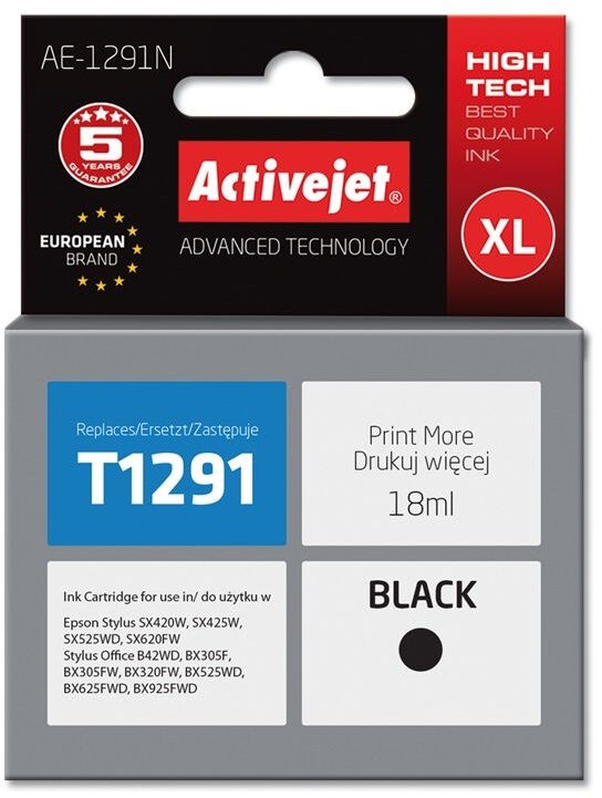Activejet AE-1291N Ink (replacement for Epson T1291; Supreme; 18 ml; black)