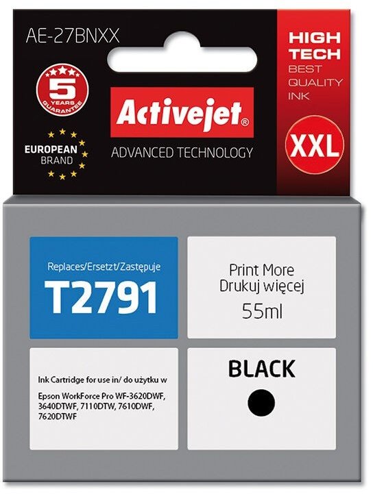 Activejet AE-27BNXX Ink cartridge (replacement for Epson 27XXL T2791; Supreme; 55 ml; black)