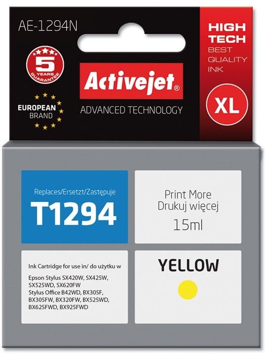 Activejet AE-1294N Ink (replacement for Epson T1294; Supreme; 15 ml; yellow)