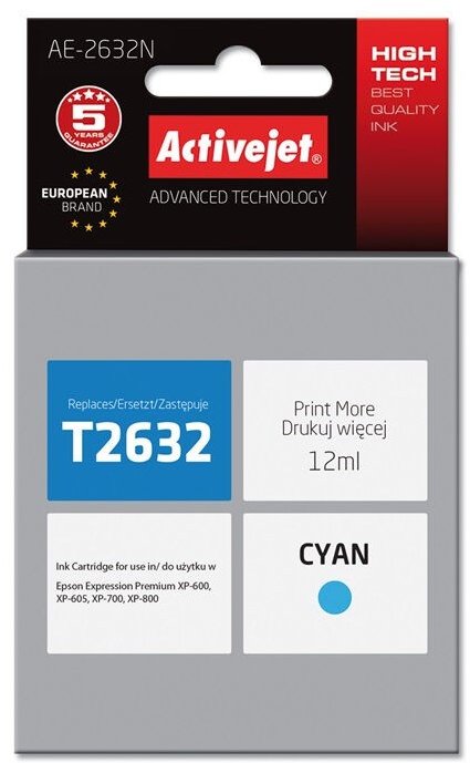 Activejet AE-2632N Ink cartridge (replacement for Epson 26 T2632; Supreme; 12 ml; cyan)