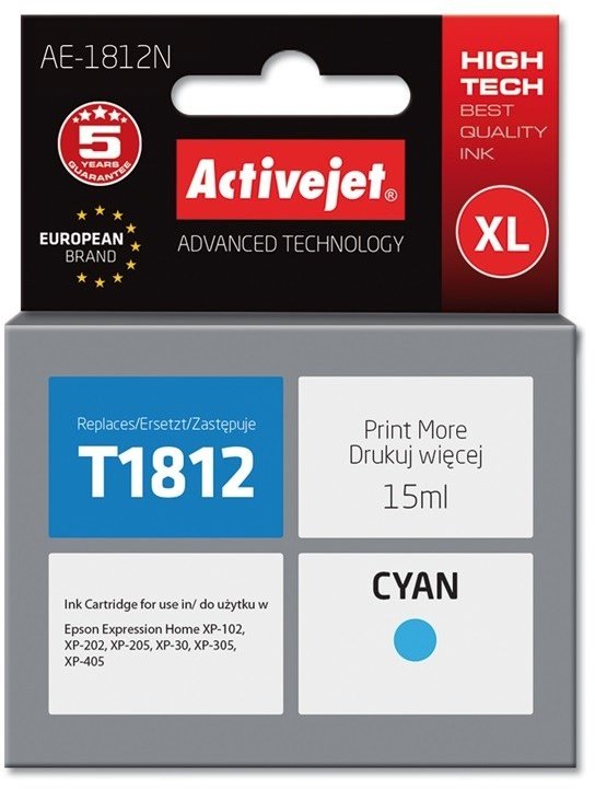 Activejet AE-1812N ink (replacement for Epson 18XL T1812; Supreme; 15 ml; cyan)