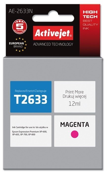 Activejet AE-2633N Ink (replacement for Epson 26 T2633; Supreme; 12 ml; magenta)