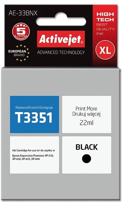 Activejet AE-33BNX Ink cartridge (replacement for Epson 33XL T3351; Supreme; 22 ml; black)