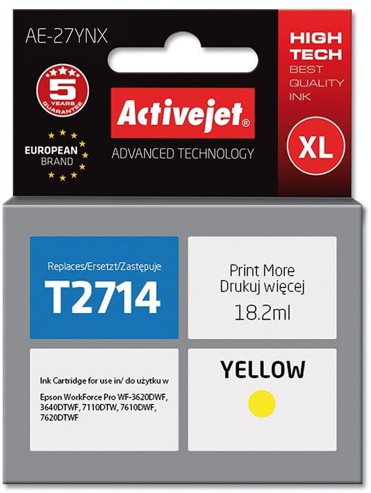 Activejet AE-27YNX Ink (replacement for Epson 27XL T2714; Supreme; 18 ml; yellow)