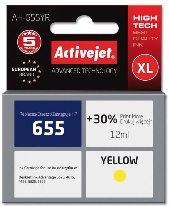 Activejet AH-655YR Ink (replacement for HP 655 CZ112AE; Premium; 12 ml; yellow)