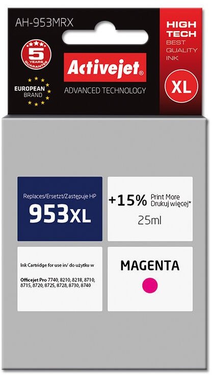 Activejet AH-953MRX ink (replacement for HP 953XL F6U17AE; Premium; 25 ml; magenta)