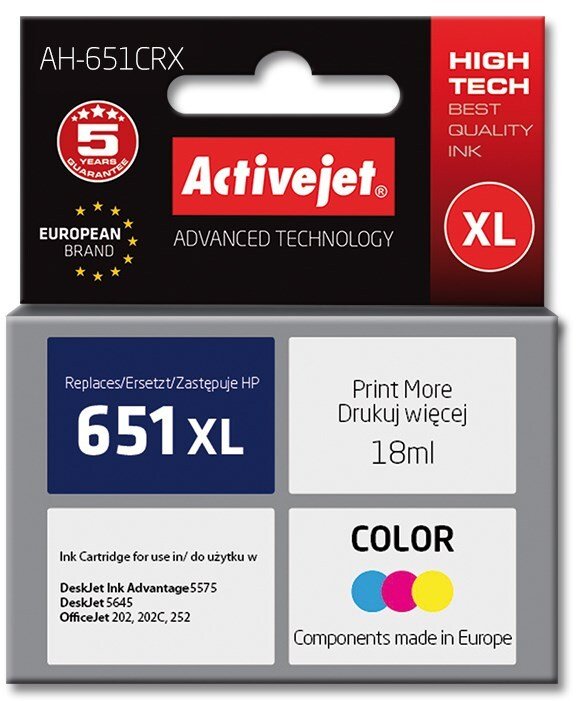 Activejet AH-651CRX ink (replacement for HP 651 C2P11AE; Premium; 18 ml; color)