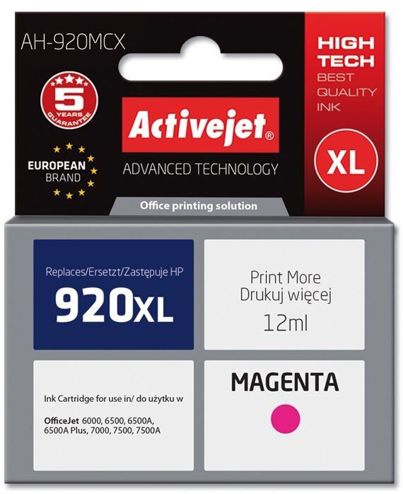 Activejet AH-920MCX Ink Cartridge (replacement for HP 920XL CD973AE; Premium; 12 ml; magenta)