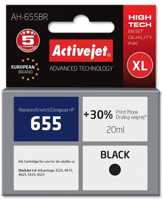 Activejet AH-655BR ink (replacement for HP 655 CZ109AE; Premium; 20 ml; black)