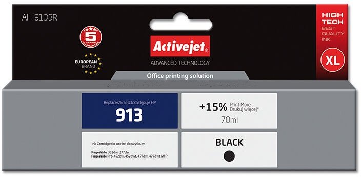 Activejet AH-913BR Ink (replacement for HP 913 L0R095AE; Premium; 70 ml; black)