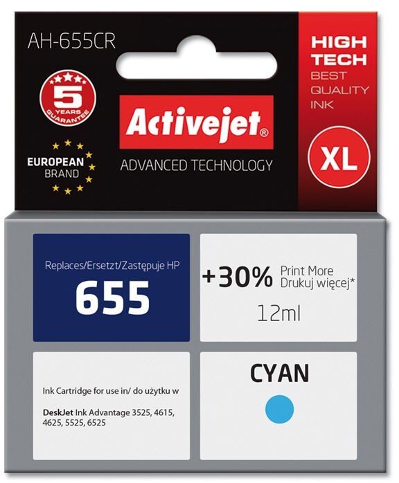 Activejet AH-655CR Ink (replacement for HP 655 CZ110AE; Premium; 12 ml; cyan)