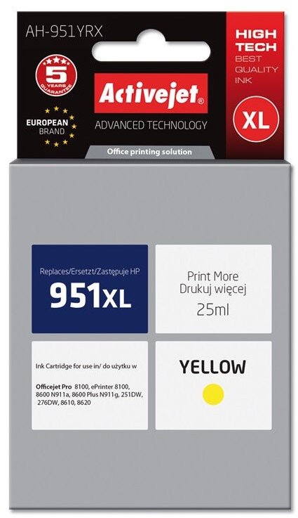 Activejet AH-951YRX Ink (replacement for HP 951XL CN048AE; Premium; 25 ml; yellow)