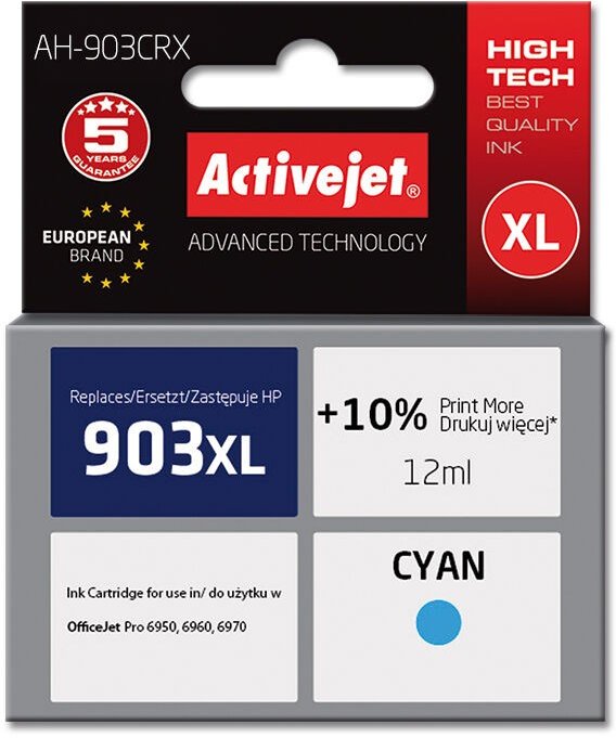 Activejet AH-903CRX Ink (replacement for HP 903XL T6M03AE; Premium; 12 ml; cyan)