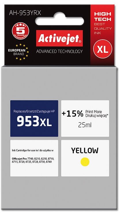 Activejet AH-953YRX ink (replacement for HP 953XL F6U18AE; Premium; 25 ml; yellow)