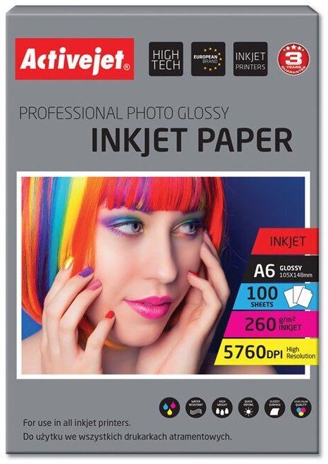 Activejet AP6-260GR100 Photo Paper for Ink Printers A6 100 pcs Tootekood: AP6-260GR100 GTIN: 5901452122638 Consumables | 20,75 € −0,05 € | Poodi | ||