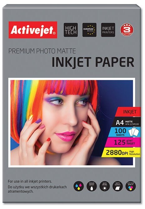 Activejet AP4-125M100 Matte Photo Paper for Ink Printers A4 100 pcs Tootekood: AP4-125M100 GTIN: 5901443015666 Consumables | 14,25 € | Poodi | ||