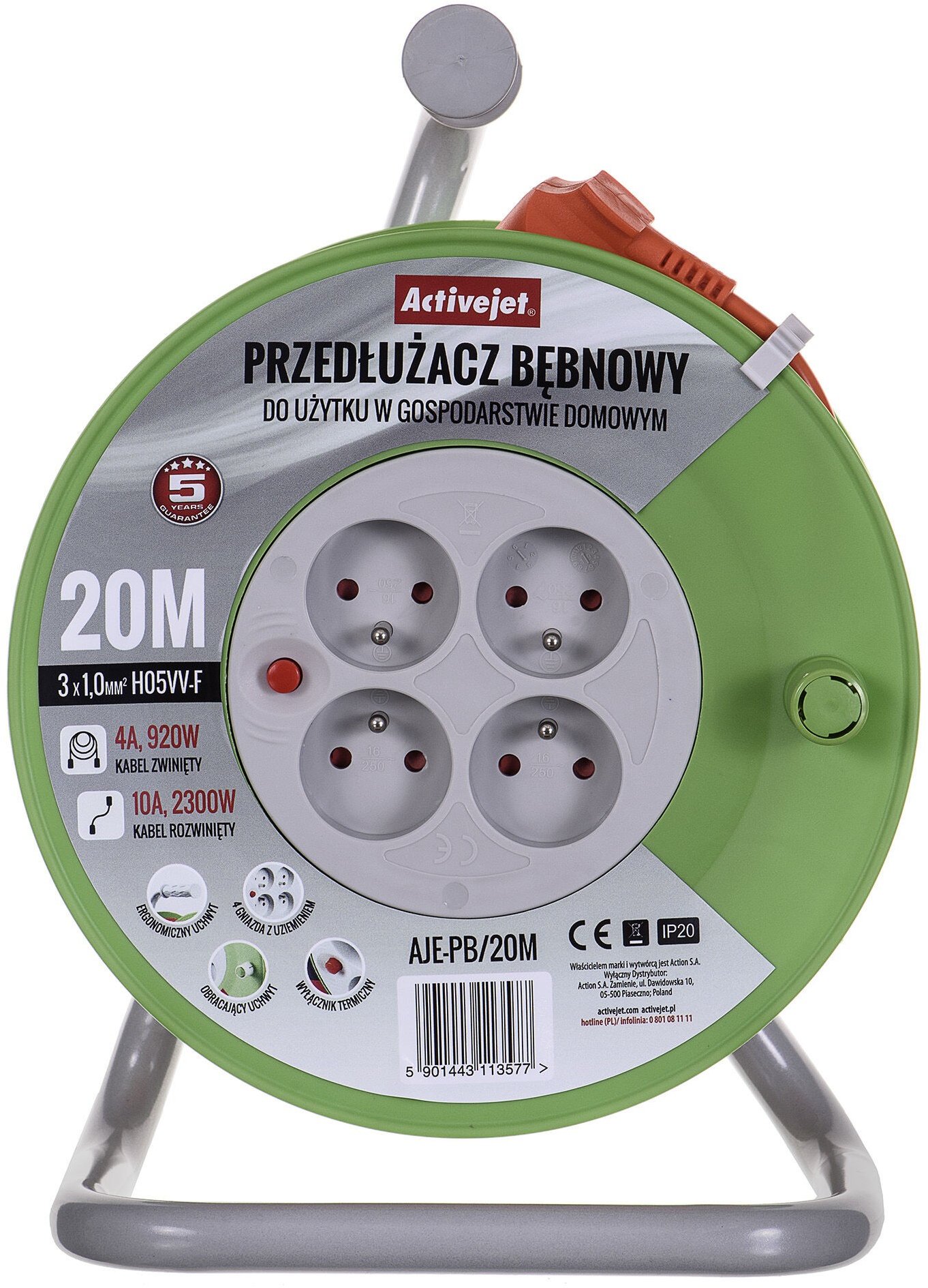 Activejet AJE-PB/20M reel extension cord 20m Tootekood: AJE-PB/20M GTIN: 5901443113577 Extension Cords | 43,55 € | Poodi | ||