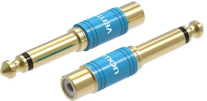 Audio Adapter Vention VAB-S01-L, Jack 3.5mm to Jack 6.5mm With the Vention VAB-S01-L adapter, for example, you can connect headphones, a microphone or a speaker with a 3.5mm connector to a guitar, amplifier or audio mixer with a 6.5mm jack port. The gold-plated components ensure better signal transmission and greater resistance to interference, resulting in great sound quality. The product features wide compatibility and is very convenient to use.High quality workmanshipThe adapter features a solid, durable construction - it will serve you well for a long time. It is very little prone to wear and tear, and its gold-plated components are resistant to oxidation, corrosion and damage. Moreover, thanks to its compact, lightweight design, the product can accompany you almost anywhere. It will easily fit in your backpack, purse, guitar case or even in your pocket!BrandVentionModelVAB-S01-LColorBlueInterface6.5 mm male to 3.5 mm femaleDimensions9.6 x 45 mm