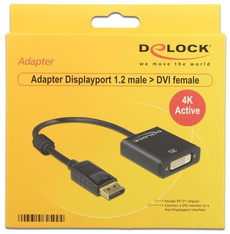 This adapter enables the connection, for example. HDMI monitor through a free Displayport connector.This adapter supports resolutions up to Ultra HD (4K) and provides backward compatibility to the resolution of Full-HD 1080p. The adapter offers an active conversion is therefore also suitable for graphics cards that do not support the display signal DP ++.Main features:Chipset: Parade PS171 Specification Displayport 1.2 and High Speed HDMI Active converter for video cards with the output of the DP or DP ++ Up to 3840 x 2160 @ 30 Hz (depending on the monitor and the system) Supports 3D display (1080p @ 120 Hz) Supports HDCP 1.3 Support Eyefinity Output Formats Audio: 8-channel LPCM, compressed audio (AC-3, DTS) and the HBR audio format with max. 24 Bit sample size and sampling frequency of 192 kHz Gold-plated connector 1 x ferrite core Compatible with any operating system, the installation does not require any drivers