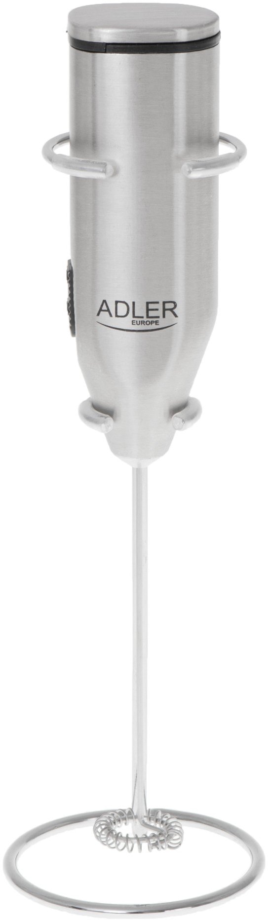 Milk frother with standFor preparing frothed milk, hot chocolate and matcha teaStainless steel whisk and housingStand for easy storage: Ø66x190mmDevice size: 3,8cm (depth) x 2,8cm (width) x 21,5cm (height)Power source: batteries 2x1,5V AA (not included)