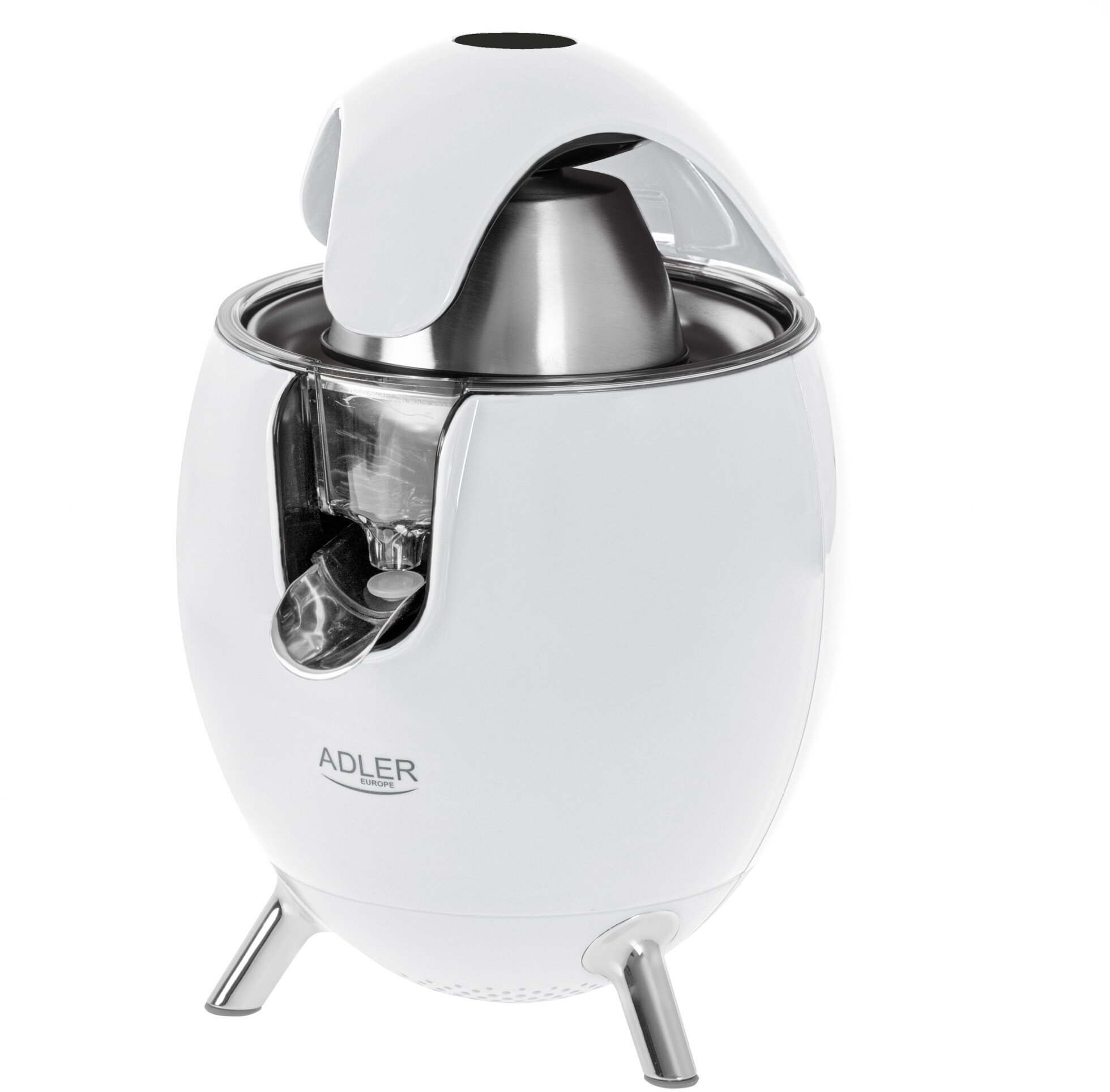2 press cones for small and big citrus fruits; Auto start/stop; Right and left rotation increases the amount of juice; Pulp sieve that separates juice from the pulp