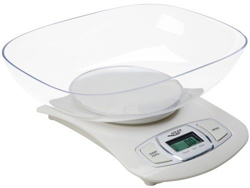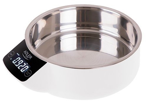 Capacity: 5kgDivision: 1gUnits of measure: g, kg, lb, oz, fl:oz ,mlClear LCD screen: 2cm x 4cm (white letters on dark background)Display backlight: yesBowl made of stainless steelBowl: 900mlweights milk and liquidsTARE functionOver-load/low power indicationAutomatic switch off after 2 minutesSize of the weighing surface: 16cm (diameter)Device size: 19cm x 17,5cm x 7cmPower supply: battery 2x 1.5V (AAA) (not included)