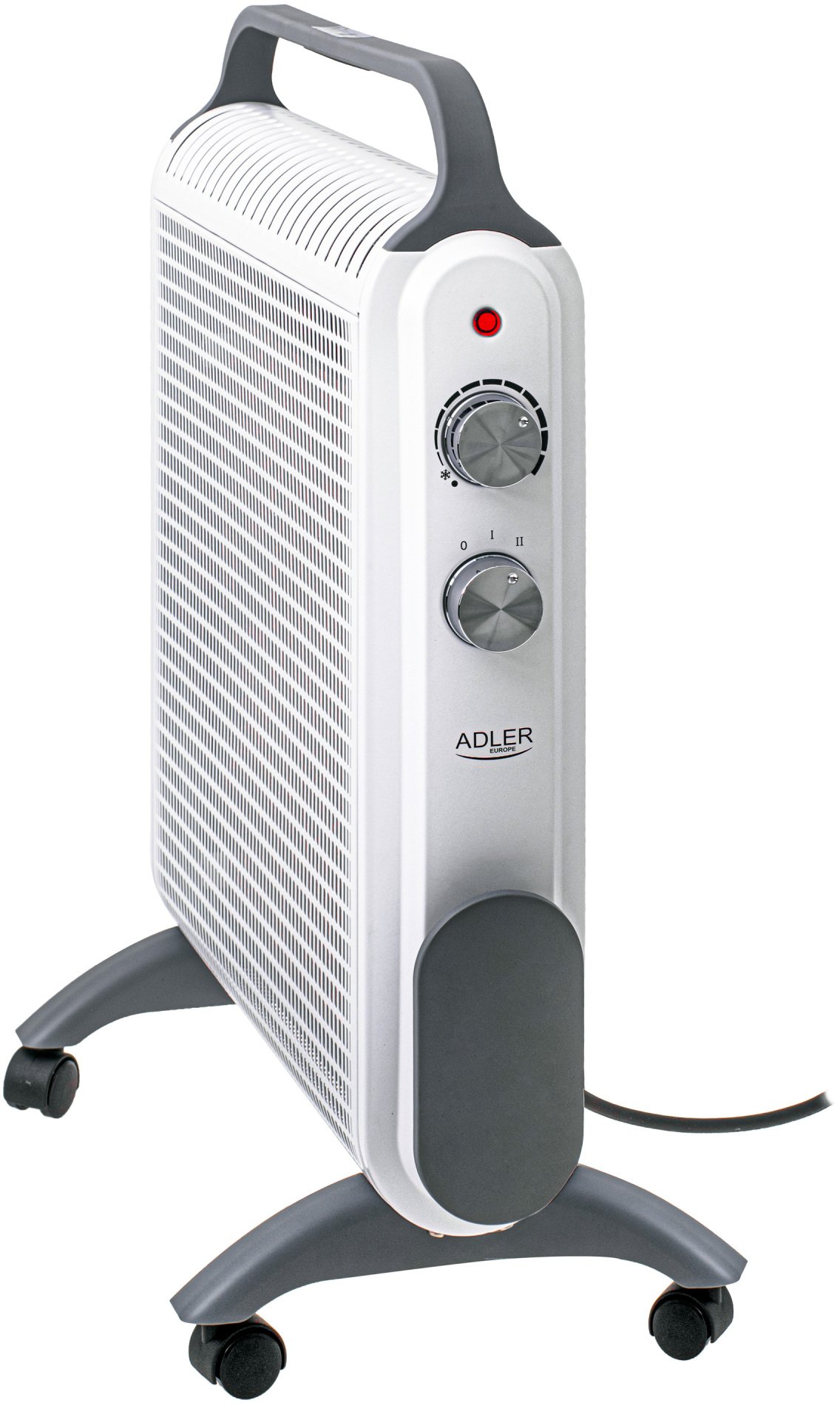 3 heating power settings 1000W, 1500W, 2500W; Smooth temperature control; Thermostat control lamp; Automatic selection of power consumption according to the set heating temperature; 11 Ribs; Wheels to protect against scratching the floor when moving