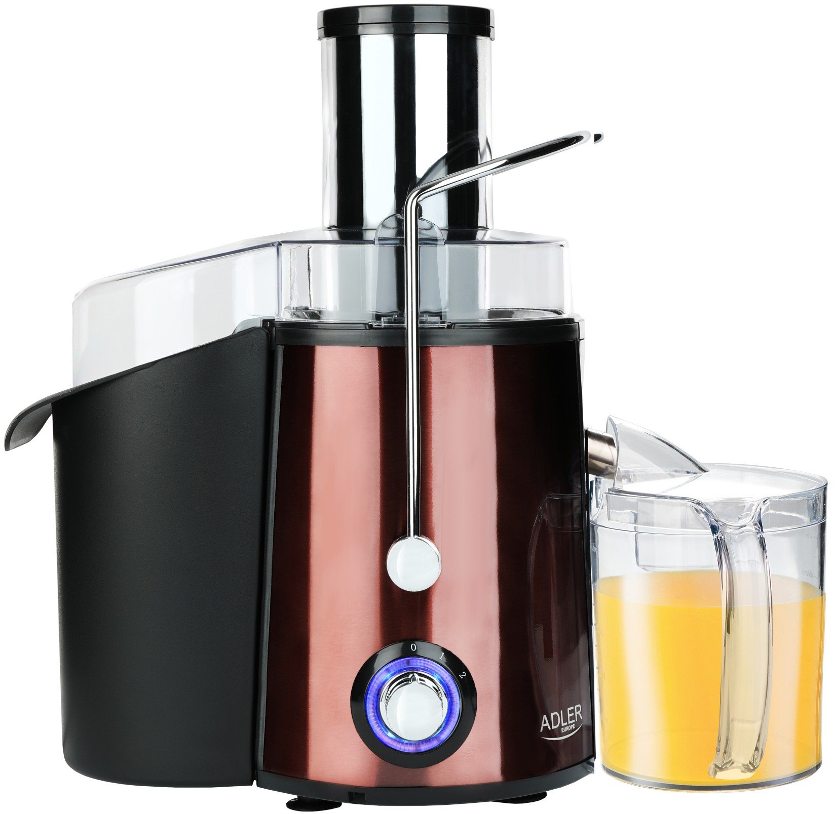 A functional juice extractor that has 1000 W of power created as one of the items in the modern series of juice extractors. It allows to prepare juice from both fruits and vegetables supporting a healthy diet. The juice is filtered through a sieve with small meshes which keeps the solid parts of the fruit/vegetable away from the juice. The sieve is made of stainless steel. Therefore to the jug goes only juice which contains a huge amount of vitamins. Pulp, stones, seeds and other remains are separated from juice and go to another tank. Due to a safety lock it is impossible to turn the device on when it is assembled in an improper way. The juice extractor makes it possible to prepare a significant amount of juice in a very short time. It is possible due to a hight power of the engine and a grand capacity of the juice pitcher - 1 l. It is also very easy and comfortable to keep the device clean - its elements are dishwasher safe.