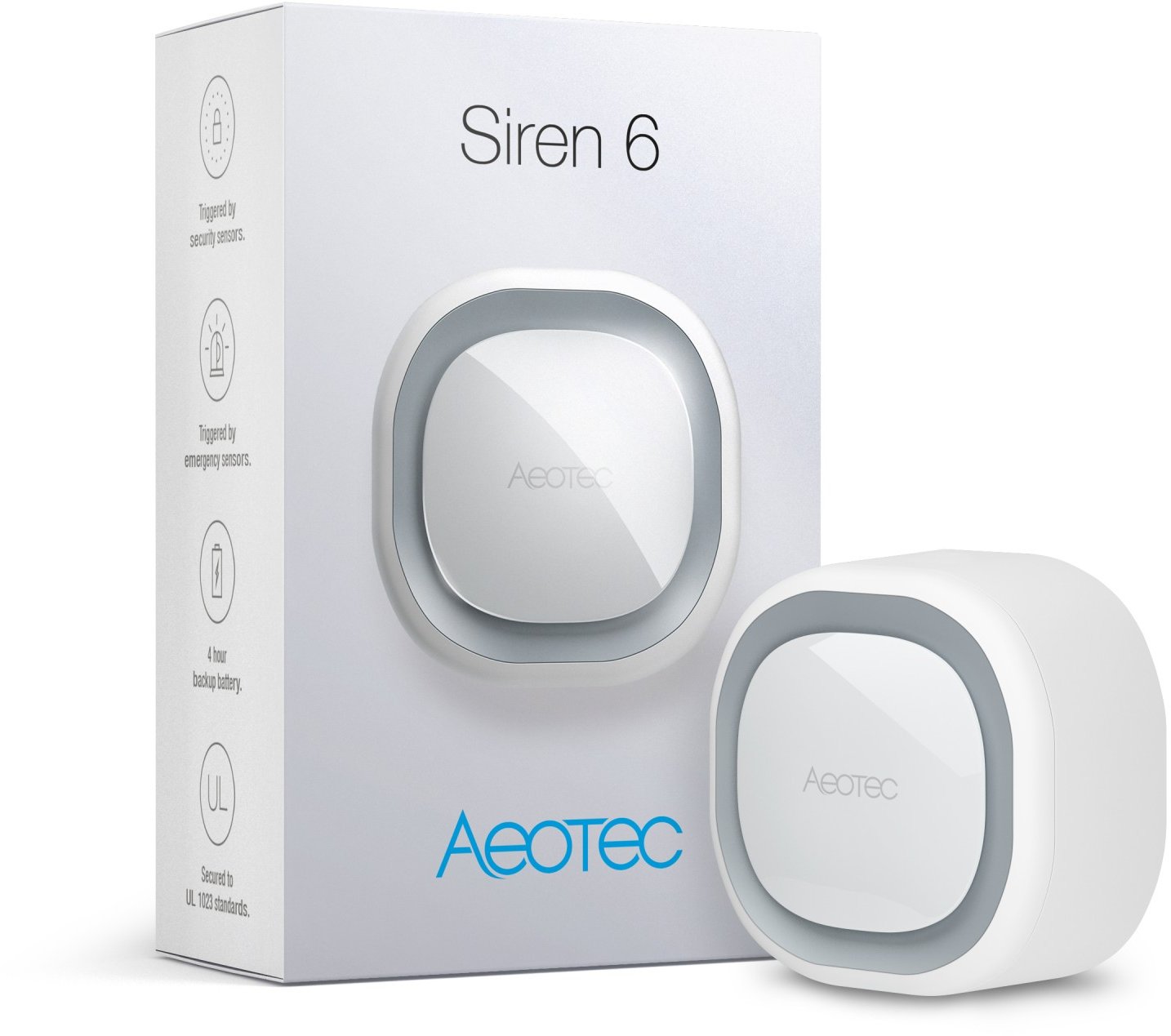 Siren with acoustic and visual alarm. Can also be used as a doorbell. 30 preconfigured signal tones. Up to 110 db. Power supply: 230V. Battery operation: 1x PT502035 (400mAh) (only for bridging). Safety standard S2. Wireless technology: Z-Wave Plus.
