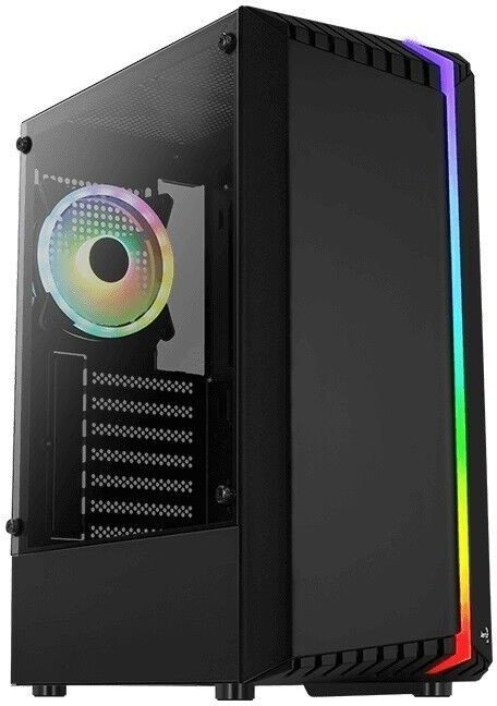 The Aerocool Genesis ARGB V1 Midi-Tower is a computer case that can fit motherboards up to ATX size and graphics cards up to 380mm in length. It has the ability to install up to 7 fans and a 240mm radiator. The case comes with a pre-installed fan and a tempered glass side panel to show off your build.