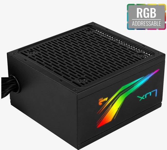 Featuring a stylish and elegant RGB LED design, the LUX RGB enhances the look and feel of your gaming setup while efficiently powering your system. Bring your system to life with 13 preset lighting effects that can be controlled via LED control button. Compatible with Addressable RGB motherboards using Addressable +5V RGB connector. Built with 30% increased ventilation area in the body of the PSU, the LUX RGB is designed for increased air flow and circulation. Control up to 13 lighting effects via LED control button Compatible with Addressable RGB using +5V Addressable RGB connector 30% Increased ventilation area in the body of the PSU allows for increased air flow 80Plus 230V EU Bronze Certified for up to 88%+ efficiency OPP/OVP/UVP/SCP electrical protection included Silent 12cm black fan with optimized thermal fan speed control Soft, black, flat cables allow for more convenient cable management