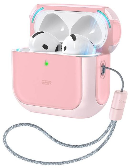 AirPods 4 Orbit Hybrid Case (pink)The Orbit Hybrid case for AirPods 4 in pink is a combination of elegance and functionality. With a strong magnetic closure, the cover stays securely in place, protecting your headphones from accidental opening and damage. The compact, lightweight design makes it convenient to wear on your wrist or clip to your bag for easy access to your headphones at any time.Robust protection and compatibilityThe case consists of an ultra-durable hard shell and a shock-absorbing core, effectively protecting the headphones from drops and scratches. Orbit Hybrid is compatible with all types of wireless chargers, and the built-in 220g magnets ensure secure and precise placement on the MagSafe charger for fast and convenient charging.Additional accessories includedThe kit includes not only the case itself, but also an adjustable wrist strap, a cleaning brush, an easy removal tool, and an adhesive strip for extra stability. All of this makes the Orbit Hybrid case an ideal choice for those looking for stylish and practical protection for their AirPods 4.IncludedOrbit Hybrid CaseAdjustable wrist strapCleaning brushTool for easy removalSelf-adhesive strap ManufacturerESRManufacturer code1C0110602ColorPinkCompatibilityAirPods 4