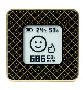 Stay informed about CO2, humidity, and temperature levels in your home or workplace! Luxurious: Experience pure elegance with the Luxurious casing of the AIRVALENT monitor. Adorned with a sophisticated golden drawing on a sleek black backdrop, it exudes timeless beauty while providing top-notch air quality monitoring in your space.