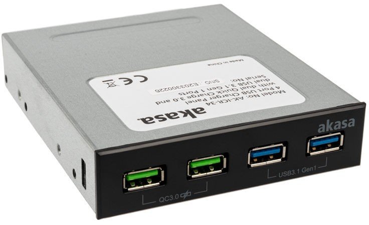 Akasa USB 3.1 Gen2 and Quick Charge Panel 3.5 inch - black Tootekood: AK-ICR-34 GTIN: 4710679550299 Case accessories | 28,85 € | Poodi | ||