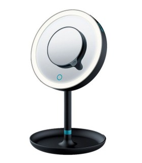 * Valgustatud lauapealne kosmeetikapeegel koos hoiualusega, värv must * Suur peegelpind koos magnetilise suurendusega peegliga * HPidevalt reguleeritav hämardusfunktsioon, autoff 15 min, sisse/välja lüliti (sensor) * Peegli läbimõõt 17,5 cm * Patareitoitel (3 x AA komplektis) * Toodetud Saksamaal