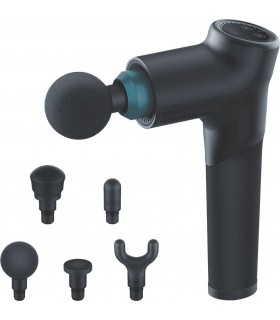 * Võimas ja rahustav lihasmassaaž pingete leevendamiseks, ergonoomiline libisemiskindel käepide, värv must * 9 intensiivsuse astet ( 1200-3000 p/min) ja 3 erinevat massaaži programmi * 5 massaažitarvikut individuaalseks kasutamiseks * Lihtne kasutada tänu LED-puuteekraanile * LED-tuled aku laetuse ja intensiivsuse taseme kuvamiseks * Liitiumioonaku kuni 5,5 tunniseks kasutuseks * Spetsiaalne hoiustamise kohvrer