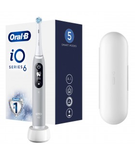 * Oral-B iO™ revolutsioonilise magnetilise tehnoloogiaga hambahari, värv hall * Eriline ümar harjapea puhastab asjatundlikult mikrovibratsioonide ja võngetega, 16-kraadise nurga all risti-rästi harjased eemaldavad rohkem kattu ülimaks puhastuseks * Tehisintellekt tuvastab harjamisviisi ja juhendab Oral-B rakenduse kaudu, et ükski piirkond vahele ei jääks * Nutikas surveandur näitab punast tuld, kui harjad liiga tugevalt, ja rohelist, kui harjad täpselt õigesti * Interaktiivne värviekraan näitab 7 harjamisrežiimi, laadimise edenemist ja 2-minutilist harjamistaimerit * Kohale lukustuv displeiga magnetlaadija tagab täieliku laetuse ca 3 tunniga * Laadiv reisivutlar Power2Go