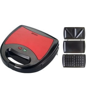 * Kol erinevat plaati. 4 kolmnurkset võileiba, 2 paksu vahlit ja 12 pähklikujulist küpsist, värv punane * Plaadid roostekindla terasest, külgevõtmatu küpsetusplaatide pinnaviimistlus * Punane toite märgutuli, roheline toite märgutuli * Võimsus: 750 W