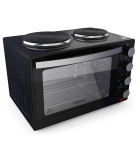 * 2 x keedutsooni keraamiline ( 16,5 ja 14,5 cm, 1500 /1200 W), ahi, värv must, maht 35 l * Suur topeltklaasiga uks, taimer 120 min * Ahi võib korraga töötada suure pliidiplaadiga * 9 funktsiooni, pliidiplaadi võimsuse reguleerimine * Reguleeritav ahju temperatuur 90-230°C, ahju valgustus * Komplektis grillrest, tilgakandik, ahjupann, käepide * Mõõdud: 352 x 471 x 385 mm * Võimsus 1500 W