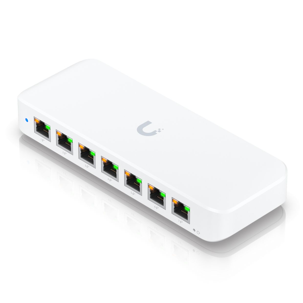 USW-Flex-MiniUniFi Compact 5Port Gigabit Desktop SwitchBuild and expand your network with the UniFi Switch part of the Ubiquiti Networks UniFi Enterprise System. The UniFi Switch model USW-Flex-Mini is a smart managed Gigabit switch. It offers 5 RJ45 Ethernet ports providing 1 Gigabit links to your devices. Power up the USW-Flex-Mini with the included USB Type-C power adapter or with 802.3af PoE Ethernet in port 1.
