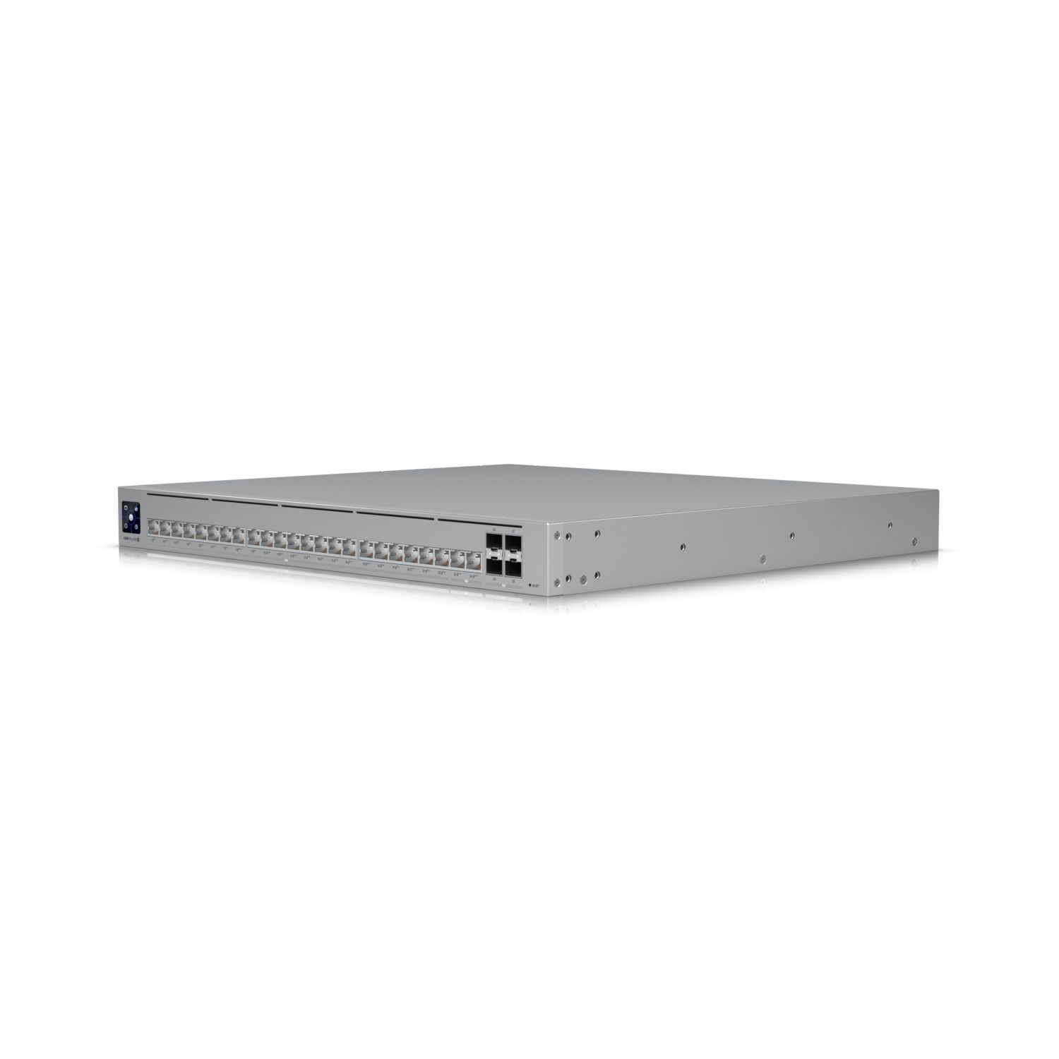 USW-Pro-24The UniFi Switch Pro 24 is a fully managed Layer 3 switch with (24) Gigabit Ethernet ports. (2) 10G SFP+ uplinks offer link aggregation for higher capacity and increased availability. The UniFi Switch Pro 24 features a rich set of Layer 2 capabilities and integrates Layer 3 functionality such as inter-VLAN routing static routing and DHCP server. The UniFi Switch Pro 24 is an ideal aggregation and access layer switch for any UniFi solution – it combines innovative near-silent cooling with UniFi SmartPower RPS power redundancy. UniFi Network Controller and UniFi Network mobile app allow admins to configure and monitor virtually all of the switch features in an intuitive graphical user interface from anywhere.Features: (24) Gigabit RJ45 ports (2) 10G SFP+ ports Layer 2 and Layer 3* features UniFi SmartPower RPS DC input Near-silent cooling 1.3" touchscreen display Managed by UniFi Network Controller *Available in future firmware upgrade.