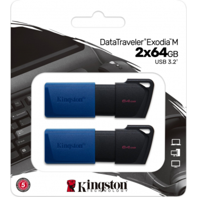 "STICK 64 GB USB 3.2 Kingston DataTraveler Exodia M 2er Pack must/sinine" Tootekood: DTXM/64GB-2P GTIN: 740617326352 USB mälupulgad | 29,60 € | Poodi | ||