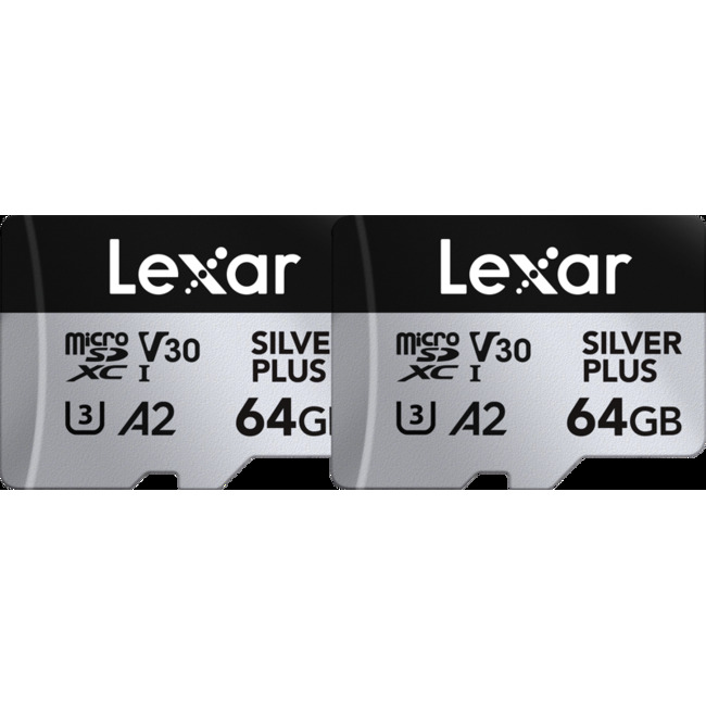 "Lexar 64GB microSDXC Professional SILVER Plus UHS-I A2 V30 U3 4K - 2 tk. Tootekood: LMSSIPL064G-B2ANG GTIN: 8433671351102 Mälukaardid | 16,66 € | Poodi | ||