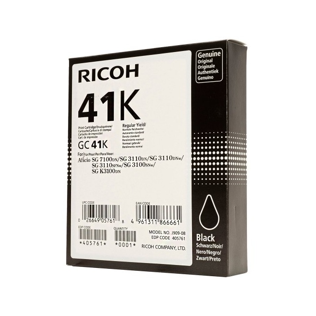 "Ricoh Ink 405761 schwarz GC41K bis zu 2.500 Seiten ISO/IEC 24711" Tootekood: 405761 GTIN: 4961311866661 Printerid | 35,24 € | Poodi | ||
