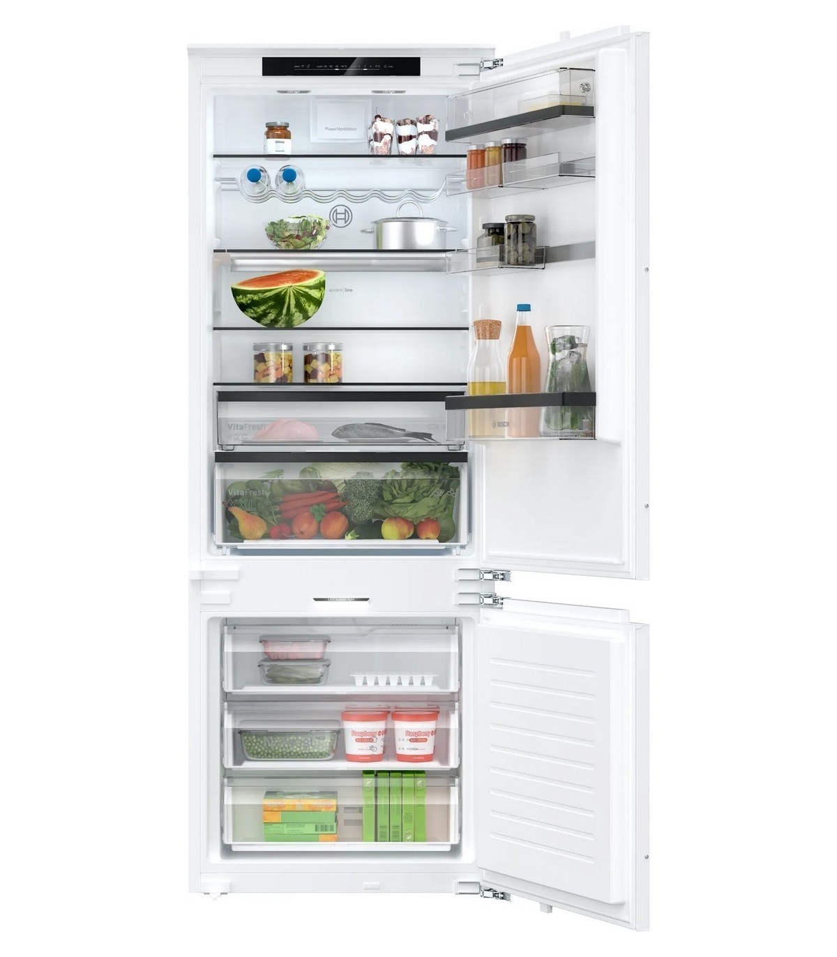 Bosch KIN96VFD0 Tootekood: KIN96VFD0 Integreeritav kodutehnika,Integreeritavad külmikud,Sügavkülma osa all Seeria 4, suur integreeritav külmik-sügavkülmik.Integreeritud XLLisakõrgus annab rohkem ruumi!Kas külmikuruum kipub otsa saama? Meie integreeritud XL külmik tuleb appi. Võrreldes tavalise integreeritud sügavkülmikuga, annab 11% lisaruumi kindluse, et sul ei jää enam kunagi ruumi puudu. Tänu eriti kõrgele disainile saad hoiustada rohkem asju, ilma lisaruutmeetreid hõivamata. Ei täistopitud riiulitele, rohkem ruumi sinu lemmiktoitudele ja -jookidele.VitaFresh XXL <0 °C>Rohkelt ruumi värsketele saadustele. Ruumikas VitaFresh XXL < 0 °C> süsteem pakub värskele toidule ideaalset säilituskeskkonda. Liha ja kala on võimalik hoida madalamal temperatuuril ning kohandatavate tingimustega sahtlis püsivad puu- ja köögiviljad tõeliselt värsked.NoFrostSügavkülmikut ei ole vaja enam kunagi sulatada. Sügavkülmiku sisemuses ühtlaselt ringlev kuiv külm õhk takistab jää moodustumist, mistõttu jääd ei kogune ei tagaseinale ega ka sahtlitesse. NoFrost on ülimalt mugav, kuna te ei pea enam kunagi sügavkülmikut sulatama.Eco AirflowPüsiv temperatuur aitab tagada värskuse kauemaks.Ebaühtlane temperatuur külmikus võib mõjutada toidu maitset ja säilivust.Eco Airflow aitab niiskust ja temperatuuri ühtlaselt jaotada, et toit püsiks kauem värskena.HoiatusheliKui uks ei ole suletud või tekib mõni muu tõrge, antakse sellest märku hoiatusheli või valgusega.Eriti kindlad ukseriiulid.Ukseriiulite evolutsioon. Tänu kõrgematele äärtele mahutavad optimeeritud ukseriiulid rohkem ning on stabiilsemad. Välja kukkuvad ja ümber minevad asjad, näiteks väiksed purgid ja pudelid jäävad minevikku. Tänu unikaalsele tootmistehnoloogiale ja riiulite elegantsele värvile on need ilusad.2 jahutussüsteemiKaks jahutussüsteemi kiiremaks jahutamiseks. Kahe jahutussüsteemiga seadmetes saab kiiremaks jahutamiseks külmiku ja sügavkülma eraldi seadistada. Lihtsasti kasutatav juhtimissüsteem lubab temperatuure eraldi seadistada.LED-valgustusHoia oma toidukaup hästi nähtaval. LED-valgustusega ei jää sul külmkapis miski märkamatuks. Kauakestvad, energiasäästlikud LED-lambid valgustavad eredalt ja ühtlaselt kogu kapi sisu, nii et näed kõike selgelt. Kui külmikus on Home Connect tehnoloogia, saad LED-valgustust läbi äpi kontrollida. Lülita valgustus läbi mobiiltelefoni sisse ja välja või muuda selle eredus endale sobivaks. Ära koba pimeduses - uuenda oma külmik LED-valgustusele juba täna.SuperjahutusKülmik, mis oskab lahe olla. Superjahutuse funktsiooniga saad lühikeseks ajaks enne poes käimist külmiku temperatuuri langetada. See tagab, et su värske toidukaup püsib õigel temperatuuril. Ühe nupuvajutusega saad temperatuuri langetada kuni 2 kraadini. Ebavajaliku energiakulu ärahoidmiseks lülitab funktsioon tavarežiimile tagasi 6-15 tunni jooksul. Kui sinu seade on ühendatud, saad Superjahutuse funktsiooni seadistada Home Connect äpi kaudu.VitaFresh XXLEriti palju ruumi puu- ja köögiviljade kauem värskena hoidmiseks. VitaFresh XXL sahtel pakub tänu reguleeritavale temperatuurile ideaalset säilituskeskkonda kogu sinu värskele toidule. Sahtli temperatuuri saab reguleerida, et sinu puu- ja köögiviljad võimalikult kaua värskena püsiksid.Elektrooniline temperatuurikontrollKülmkapp, mis pakub täiuslikku täpsust. Unusta külmunud salat ja kahtlase värskusega liha ning naudi täpselt jahutatud toitu. Elektroonilise temperatuurikontrolli abil saad valida täpse külmkapi temperatuuri ning seda igal ajal elektrooniliselt kuvalt kontrollida. Kui sinu seade on ühendatud Home Connect funktsiooniga, ei pea sa isegi kodus olema, et temperatuuri äpi kaudu reguleerida ja toidu täiuslikku värskust säilitada. Vot see on midagi lahedat. | Laos | 969,00 € | Poodi | |