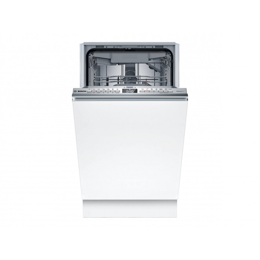 Bosch SPV4HMX10E Tootekood: SPV4HMX10E Integreeritav kodutehnika,Integreeritavad nõudepesumasinad,Täisintegreeritav 45 cm Seeria 4, Täielikult integreeritav nõudepesumasin, 45 cm Home Connecti rakenduse kaudu juhitav nutikas müravähendusfunktsiooniga nõudepesumasin. ExtraDry – täiendava kuivatamise funktsioon.Slimline VarioDrawer: täiuslik koht sinu söögiriistade, pannilabidate ja kergete esemete jaoksInfoLight – punane täpp põrandal annab märku, kas nõudepesumasin on sisse või välja lülitatud.Silence Plus – eriti vaikne 44 dB müratasemega nõudepesumasin.Rackmatic – reguleeritava kõrgusega nõudepesumasina riiul kõrgete nõude jaoks. ExtraDryIdeaalselt kuivad plastnõudÜhe nupuvajutusega aktiveeritava ExtraDry-funktsiooni kasutamisel kuivatatakse teie nõusid eriti põhjalikult, kasutades kõrgema temperatuuriga loputustsüklit ja pikemat kuivatamisfaasi. Slimline VarioDrawerVõimalus erinevaid esemeid korrapäraselt paigutada.Kerged ja ebastandardse kujuga esemed ja pannilabidad võivad nõudepesumasinas palju peavalu põhjustada. Söögiriistad lähevad üksteise vastu ega saa korralikult puhtaks, ning kerged kausid ja kaaned võivad liikuma hakata. Boschi VarioDrawer mitte ainult ei eralda iga nuga ja kahvlit üksteisest, vaid sellel on ka 2 rida punaseid kokkuklapitavaid piisid kulpide, visplite, väikeste tasside, ja hommikusöögikausside jaoks. See jätab ka teistel riiulitel rohkem ruumi muude asjade jaoks. InfoLight®Täpp, mis annab märku, kas masin töötab.InfoLight® projitseerib pesutsükli ajal põrandale punase täpi, et teaksite, kas nõudepesumasin töötab. Kui programm on lõppenud, siis täpp kaob. Silence Plus 44 dBMärkimisväärselt vaikne nõudepesuKellelegi ei meeldi müra sees olla. Kui ka teie hindate vaikust, pakub lahendust kõigest 44 dB müratasemega Silence Plusiga nõudepesumasin. See töötab märkimisväärselt vaikselt, tagades teie köögis rahuliku keskkonna. RackmaticKõrgeid nõusid on nüüd imelihtne masinasse panna.Nõudepesumasinat täites tuleb ikka ette, et kõrgete nõude, pokaalide jms jaoks oleks üleval pool veidi rohkem ruumi vaja. Siin tuleb appi Rackmatic. Reguleeri nõudepesumasina ülemist riiulit kolme eri kõrguse vahel. Nüüd saad paigutada kohmaka kujuga ja kõrged nõud täpselt sinna kuhu soovid. RackmaticTänu kolmekordsele Rackmatic-süsteemile saab ülemise korvi kõrgust hõlpsasti kuni 5 cm reguleerida ja seda isegi juhul, kui masin on täis. See tähendab veelgi rohkem reguleerimisvõimalusi ja suuremat paindlikkust. TabletiloendurSee on väga tülikas, kui soovite nõusid pesta, aga nõudepesutabletid on ootamatult otsa saanud. Home Connecti rakenduse tabletiloenduri funktsioon jälgib teie tarbimist ja teavitab teid tõukemärguandega, kui viimasest ostust on jäänud alles vaid viis tabletti. Seejärel saate otselingi kaudu mugavalt uue paki tellida. Viimaks ometi nõudepesumasin, mis kannab hoolt iseenda eest. TõukemärguandedOotamine, millal nõudepesutsükkel viimaks lõppeb, raiskab aega ja võib põhjustada ebavajalikku stressi, eriti kui teil on väga tihe graafik. Appi tuleb Home Connect, mis tagab teile meelerahu ja aitab aega produktiivsemalt kasutada. Soovi korral saab nõudepesumasin saata tõukemärguandeid otse teie mobiilseadmesse, teavitades teid programmi olekust ja andes edasi muud kasulikku teavet. Mitme asja korraga tegemine nii kodus kui ka eemal muutus just pisut lihtsamaks. Allalaetavad programmidLae alla programme, mis sobivad täiuslikult just sinu elustiiliga.Nõudepesumasina kasutamisel juhtub mõnikord, et pesuprogrammid ei vasta sinu isiklikele vajadustele. Allalaetavate programmidega Boschi nõudepesumasinad pakuvad sulle võimalust Home Connect äpi kaudu lisaprograme alla laadida. Tänu allalaetavatele programmidele saad alati valida just endale meelepärase programmi, et saaksid pesutulemustega iga kord rahul olla. ProgrammiabilineNutikas programmivalikKuidas teada, millist programmi iga masinatäie jaoks kasutada? Programmiabiline muudab otsustamise lihtsaks. Vasta lihtsalt Home Connect äpis mõnele küsimusele oma nõude tüübi, määrdumisastme ja isiklike eelistuste kohta seoses energiatõhususe, kuivuse astme, kiiruse ja müratasemega, ning süsteem soovitab sobivat programmi. Seejärel vajuta Start ning juba varsti ootavad sind täiuslikult puhtad nõud minimaalse vaevaga. KaugdiagnostikaKaugtugi tõrgete korralKui kodumasinad ei tööta nii nagu peaks, võib see üksjagu stressi põhjustada. Kaugdiagnostika tuleb siinkohal appi. Helista lihtsalt Boschi hoolduspartnerile ning sinu loal kontrollib tehnik distantsilt sinu seadet, tuvastab probleemse koha ja annab selget nõu, kuidas probleemi lahendada. Juhul kui probleemi ei ole võimalik lahendada, tuleb tehnik sinu juurde koju kõigi vajalike varuosadega ning kõrvaldab probleemi. Nutikas tugi, nutikad lahendused. Lemmikfunktsiooni valimine vaid ühe puudutusegaVõtke oma nutikast nõudepesumasinast maksimumi, lihtsustades sellega oma igapäevaelu. Lemmikfunktsiooni valik võimaldab teil oma enim kasutatud programmid ja valikud lemmikkombinatsioonina seadistada. Programmeeritud seadistuse saab käivitada Home Connecti rakenduse kaudu või otse ekraanilt. Saate kombineerida omavahel näiteks valiku Extra Dry ja programmi Eco 50° ning käivitada nõudepesumasina vaid ühe puudutusega. AquaStopUnustage nõudepesumasina lekkedFeature IconLekkekindlus on nõudepesumasinate puhul hädavajalik omadus. Meie AquaStop-süsteem pakub usaldusväärset lekkekaitset. Kui andur tuvastab lekke, peatub nõudepesumasina töö automaatselt ning vesi pumbatakse topeltseinaga vooliku kaudu välja. AquaStop kaitseb teid veekahjustuste eest ja see kehtib kogu seadme eluea vältel. ActiveWaterVähem vett, vähem energiat, parem jõudlus.Feature IconBoschi uuenduslik ActiveWater-tehnoloogia maksimeerib tõhusust, et tagada silmapaistvad tulemused, kaitstes samal ajal keskkonda. Hoolikalt sihitud veejaotus, täiustatud