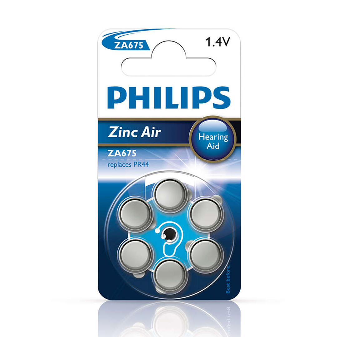6 x Patarei Philips ZA675 1.4 V Zinc Air (PR44)