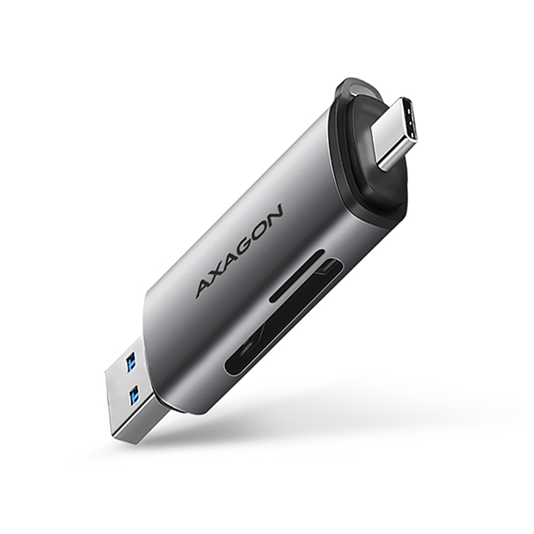 AXAGON CRE-SAC on kompaktne SuperSpeed USB mälukaardilugeja, mis toetab kõiki praegusi SD- ja microSD-kaartide versioone, sealhulgas SDXC- ja microSDXC-kaarte mahuga kuni 2 TB. Lugejal on USB-C ja USB-A pesad, mis võimaldab sellel otseselt ühendada töölaua- või sülearvutiga, samuti nutitelefonide ja tahvelarvutitega, millel on USB-C pesa. USB 3.2 Gen 1 (varasemalt USB 3.0) liidese abil saavutab lugeja UHS-I SD-kaartide puhul võrreldes USB 2.0 liidesega lugejatega oluliselt suurema andmeedastuskiiruse. Mälukaardilugeja võimaldab kahe pesa samal ajal kasutamist ja nende vahel otsese koopia tegemist. Lugeja metallkere mitte ainult ei näe hea välja, vaid suurendab ka selle vastupidavust. Mõlemad pesad on kaasaskandmise ajal kaitstud kaitsmetega. Komplekti kuuluv rõngashoidja võimaldab lugejat kinnitada võtmehoidjale.