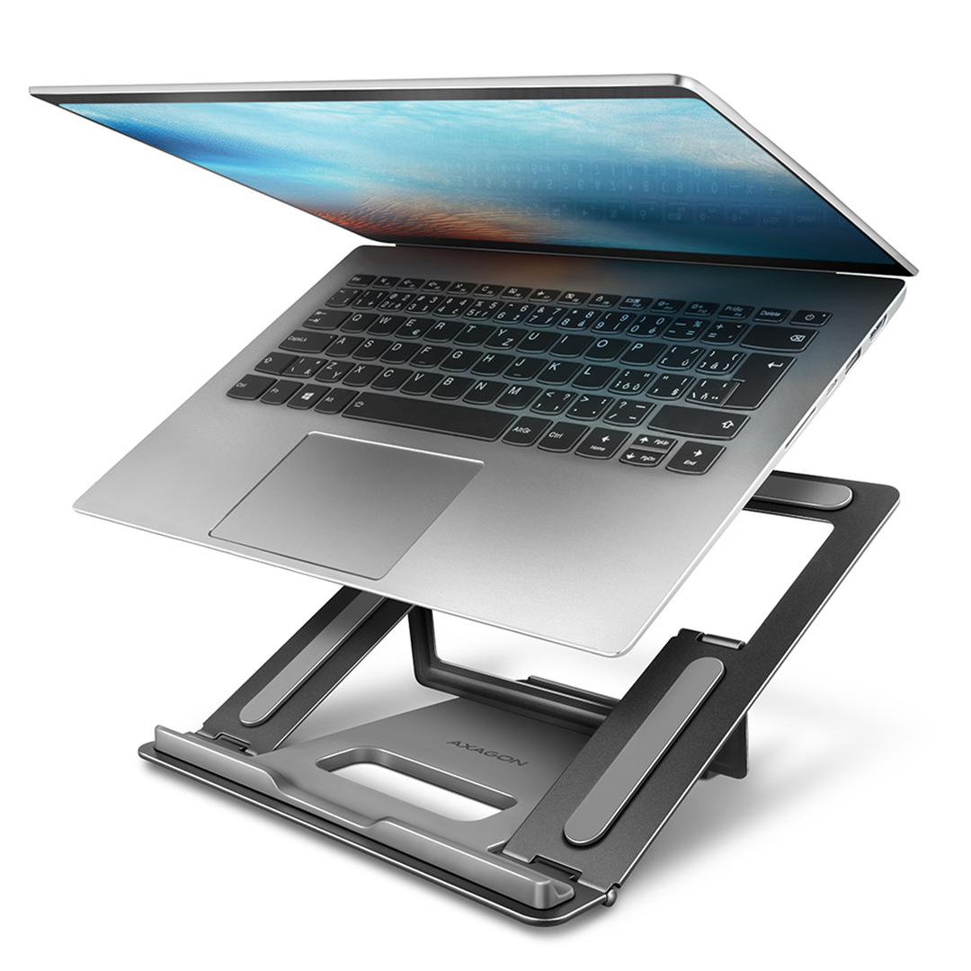 AXAGON STND-L on kokkupandav sülearvuti või tahvelarvuti alus, mis leevendab kaela- ja seljalihaste pinget arvutitöö ajal. Alus sobib universaalselt seadmetele, mille ekraani suurus on vahemikus 10" kuni 16". Nelja reguleeritava positsiooni abil saab paremat ergonoomikat saavutada. • Kerge ja tugev metallkonstruktsioon. • Libisemisvastane viimistlus, mis kaitseb seadet ka kriimustuste eest. • Sobib 10" - 16" sülearvutitele ja teistele seadmetele. • Reguleeritav kõrgus 90 - 113 mm. • Nelja reguleeritavat ergonoomilist nurka (23° - 32°). • Kompaktne ja lihtne kokku panna. • Parema soojuse hajutamise sülearvutist.