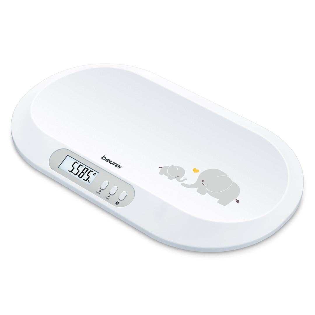 Beurer BY 90 beebikaaluga saad jälgida oma lapse kaalu. Beurer BabyCare äpis on kõik andmed nähtaval. Hold funktsiooniga on kaalumine lihtne ka siis, kui beebi ennast aktiivselt liigutab. • Andmete ülekanne Bluetoothi abil • Automaatne ja manuaalne Hold funktsioon väänleva beebi kaalumiseks • Suur LCD-ekraan (numbrite suurus 23 mm) • Kumer kaalumispind • Mõõtühikud: kg/lb/oz • Kerge puhastada • Mittelibisev alus • Integreeritud mõõdulint pikkuse mõõtmiseks (150 cm) • Kaalumisandmete mälukohtade arv: 10 • Automaatne väljalülitus • beurer BabyCare äpi tasuta allalaadimine